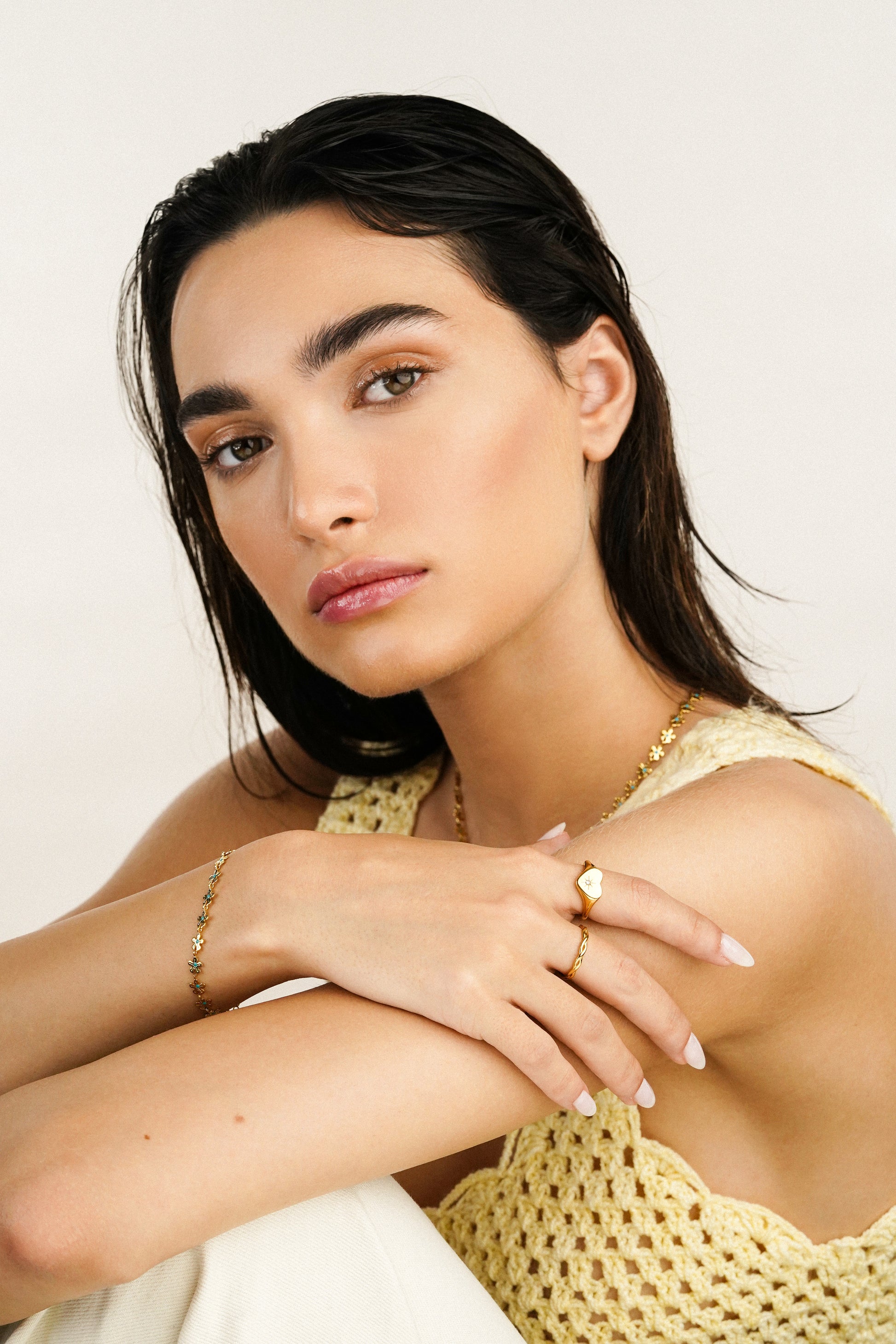 To avoid tangling or scratching your jewelry, it's best to take it off before you go to bed. Keep away from perfume, cosmetics and body and hair sprays. more details